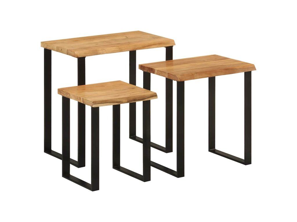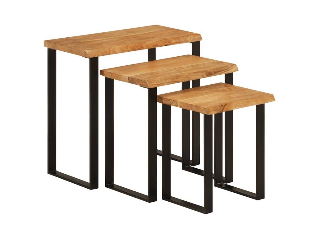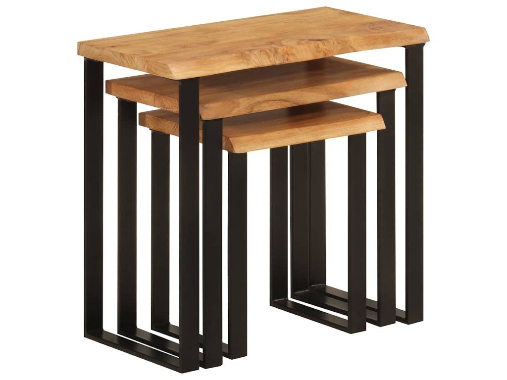 Multidom Zasúvacie stolíky 3 ks so živou hranou akáciový masív