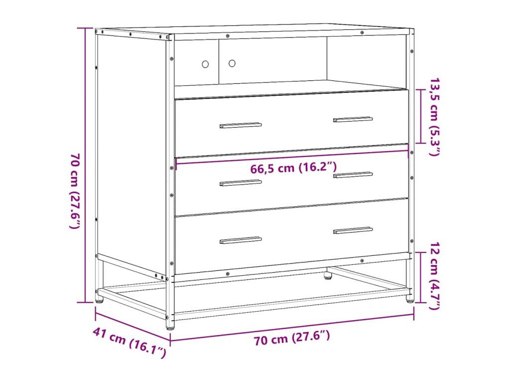 - Stabilný a trvácny rám: Železný rám komody dodá vášmu bývaniu nádych industriálneho štýlu a prináša mimoriadnu trvácnosť, stabilitu a odolnosť voči korózii.