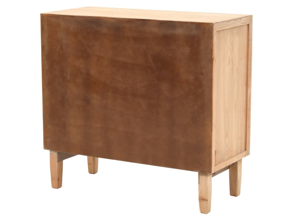 Táto vysoko stabilná a odolná skrinka bola vyrobená z masívneho jedľového dreva. Robustná vrchná doska je ideálna na umiestnenie ovocných košov, váz alebo iných dekoratívnych predmetov. Zásuvky poskytujú dostatok priestoru na uloženie rôznych predmetov. Jedinečne navrhnuté predné strany zásuviek dodávajú skrinke vintage štýl. Montáž je jednoduchá.