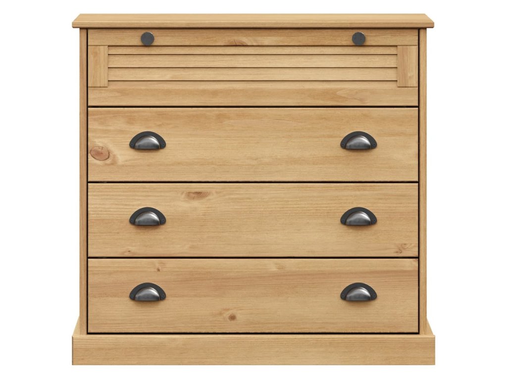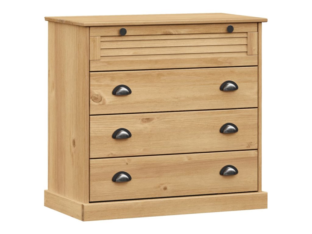 - Borovicový masív: Borovicový masív je krásny prírodný materiál. Borovicové drevo má rovnú kresbu a nachádzajú sa na ňom hrče, ktoré tomuto materiálu dodávajú charakteristický rustikálny vzhľad. Zásuvková skrinka je vyrobená z masívneho borovicového dreva a je odolná a pevná.