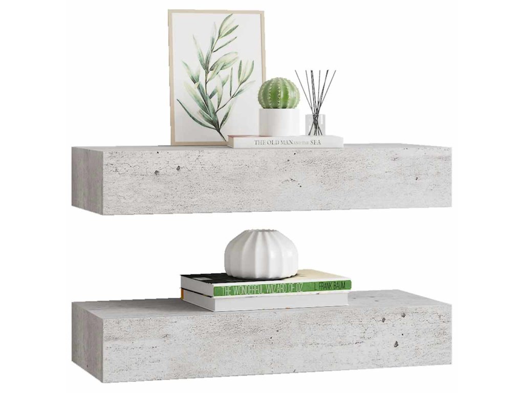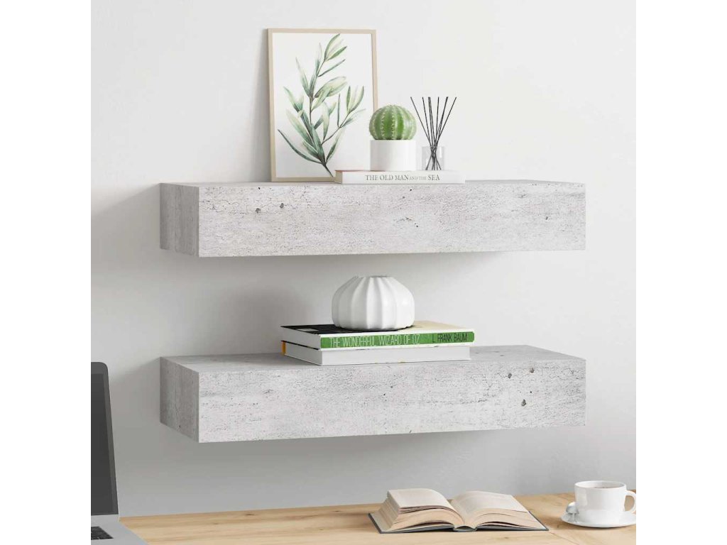 Multidom Zásuvkové police nástenné 2 ks betónovo-sivé 60x23,5x10 cm MDF