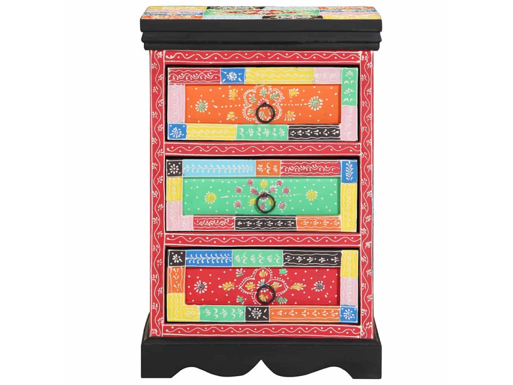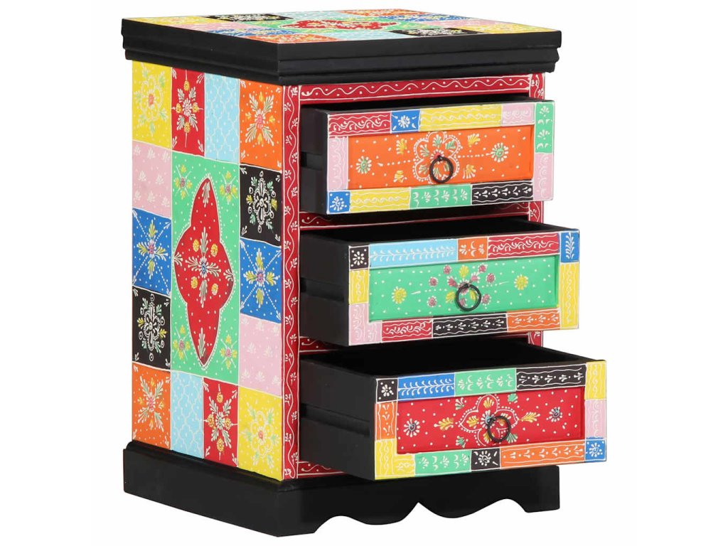 Moderný zásuvkový kabinet spája jednoduchosť a funkčnosť s estetikou, ktorá oživí každú obývačku. Vyrobený z masívneho mangového dreva, tento obdĺžnikový kúsok má rozmer 40 x 40 x 60 cm a ponúka minimalistický dizajn. Mnohofarebná povrchová úprava dodáva šmrnc a funguje ako skvelý dekoratívny aj praktický kúsok pre váš domov.