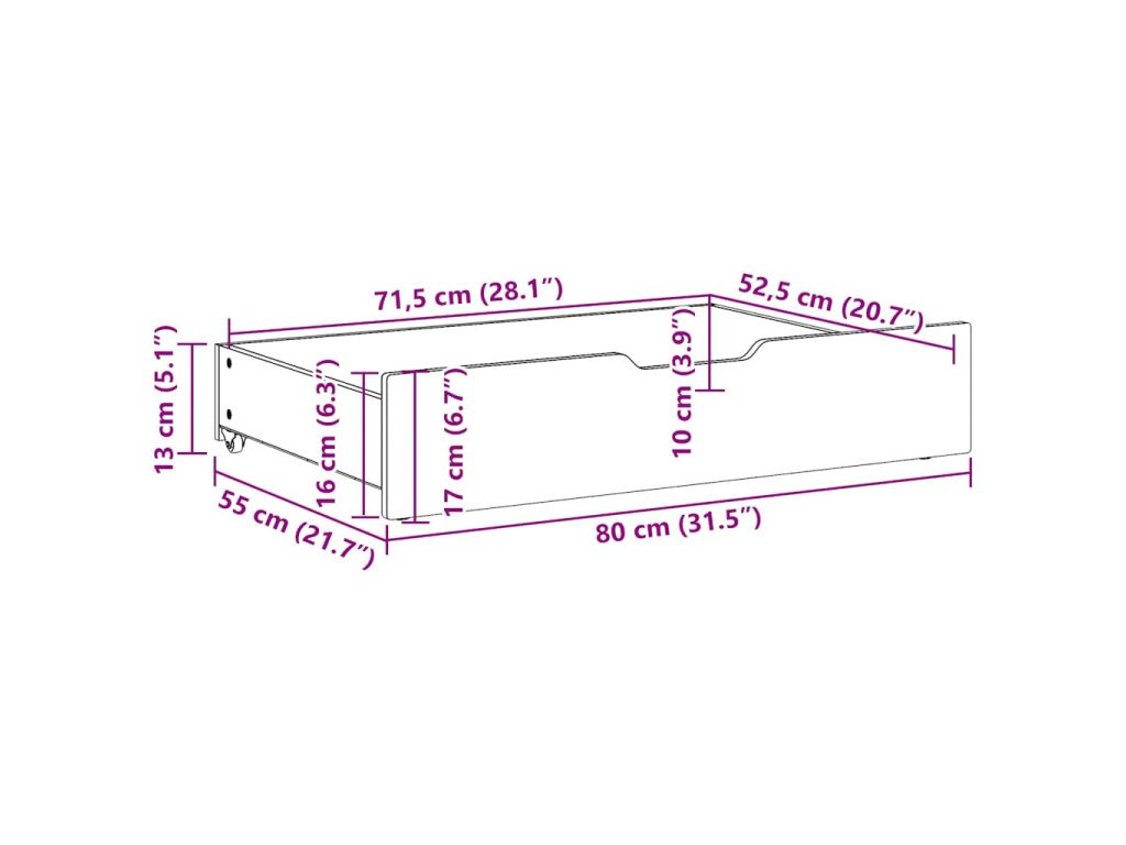 Multidom Zásuvky pod posteľ 2 ks biele 80x55x17 cm masívna borovica