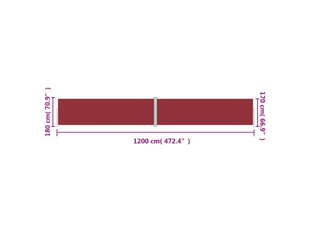 Multidom Zaťahovacia bočná markíza červená 180x1200 cm