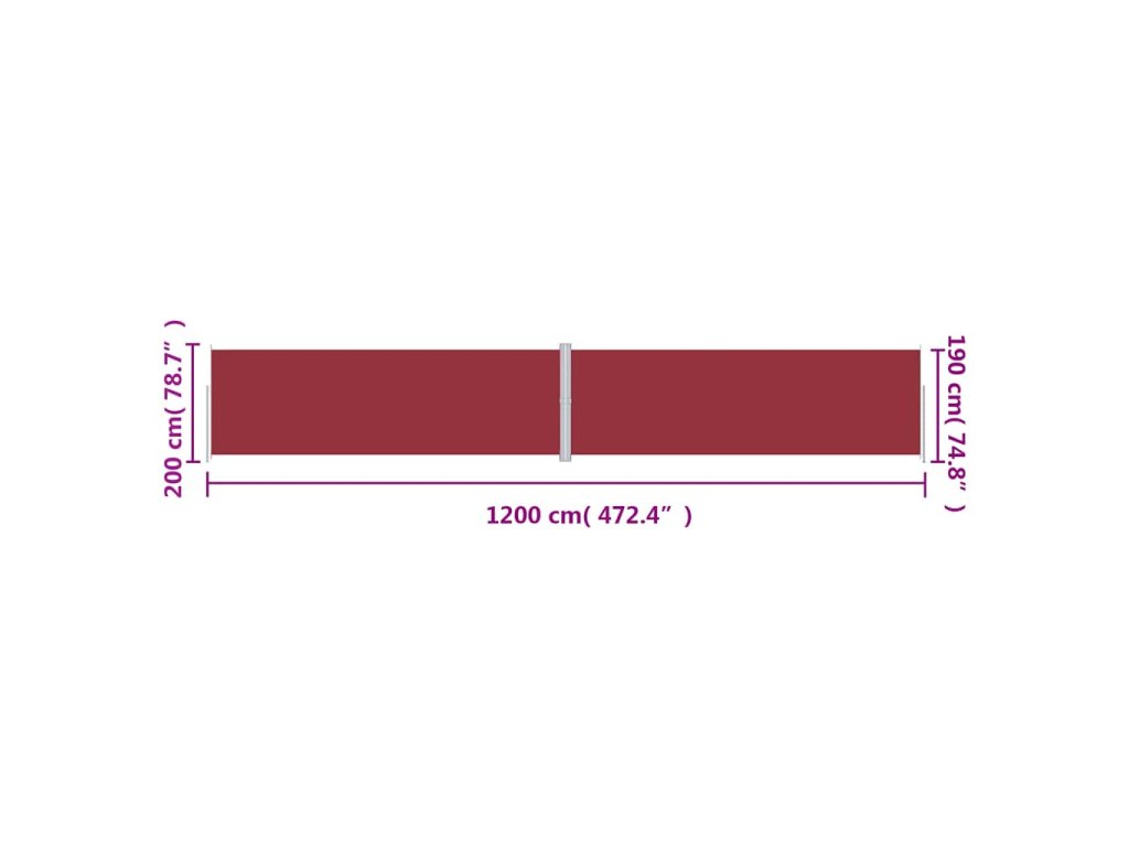 Multidom Zaťahovacia bočná markíza červená 200x1200 cm