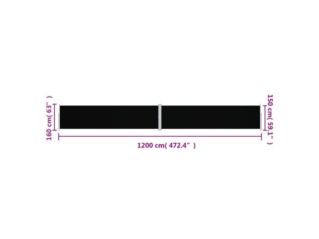 Multidom Zaťahovacia bočná markíza čierna 160x1200 cm