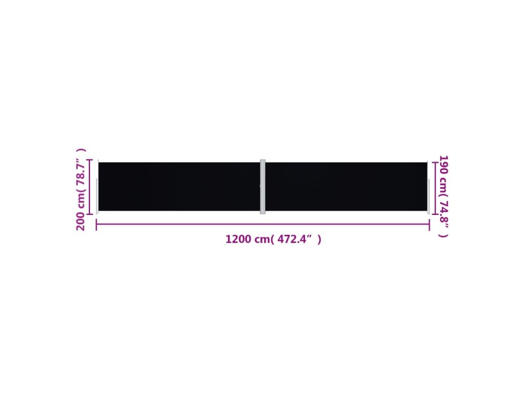 Multidom Zaťahovacia bočná markíza čierna 200x1200 cm