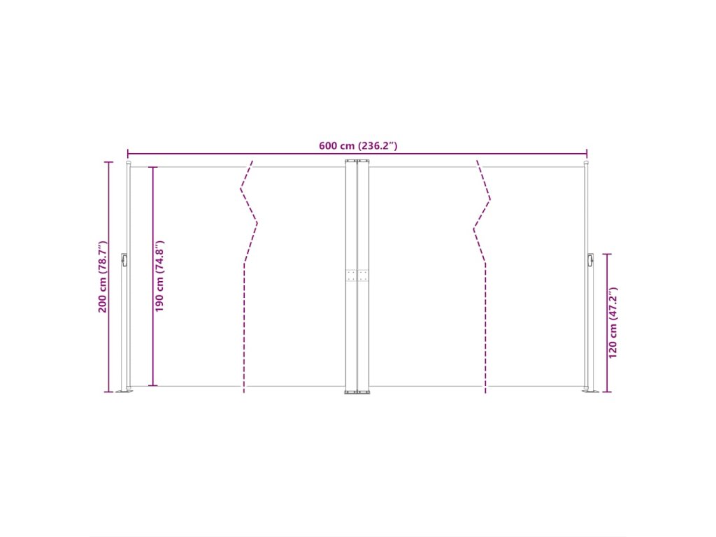 Multidom Zaťahovacia bočná markíza čierna 200x600 cm