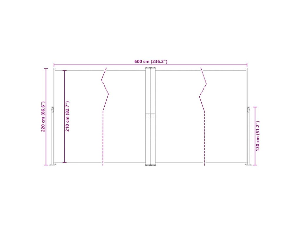 Vďaka jednoduchému, no zároveň štýlovému dizajnu predstavuje ideálny doplnok do záhrady, do dvora či na balkón. Zástena je vybavená funkciou automatického zrolovania a dá sa vytiahnuť do šírky až 600 cm. Vonkajšia zástena je vyrobená z polyesterovej látky s vrstvou PU, ktorá sa netrhá, je vodovzdorná a odolná voči UV žiareniu.