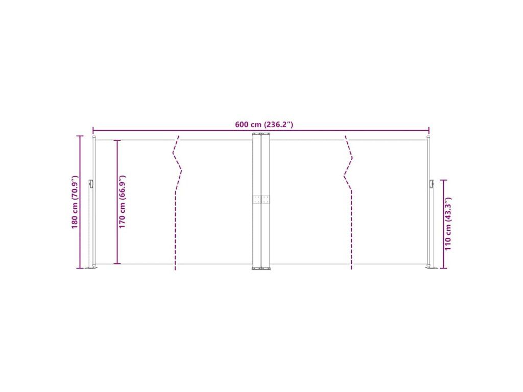 Vďaka jednoduchému, no zároveň štýlovému dizajnu predstavuje ideálny doplnok do záhrady, do dvora či na balkón. Zástena je vybavená funkciou automatického zrolovania a dá sa vytiahnuť do šírky až 600 cm. Vonkajšia zástena je vyrobená z polyesterovej látky s vrstvou PU, ktorá sa netrhá, je vodovzdorná a odolná voči UV žiareniu.