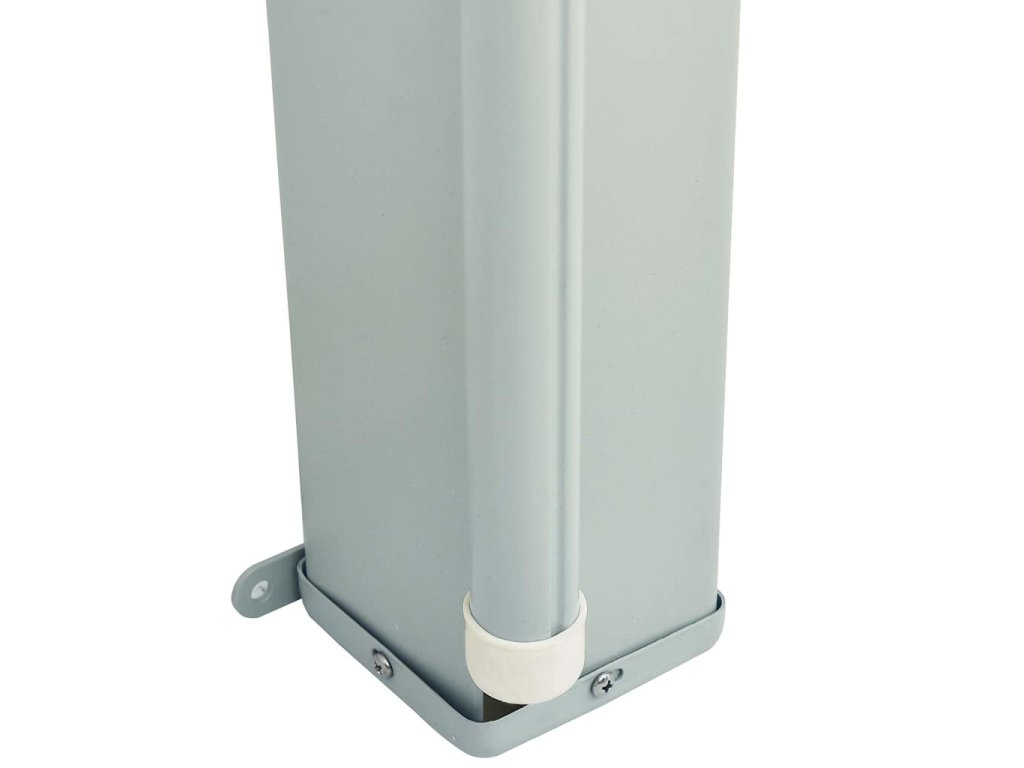 Zástena je vyrobená z polyesteru, ktorý sa netrhá a je odolný voči UV žiareniu. Kazeta, z ktorej markízu jednoducho vytiahnete von, je osadená v zvislej polohe na pevnej oceľovej základni. Markíza je navyše vybavená funkciou automatického zrolovania.