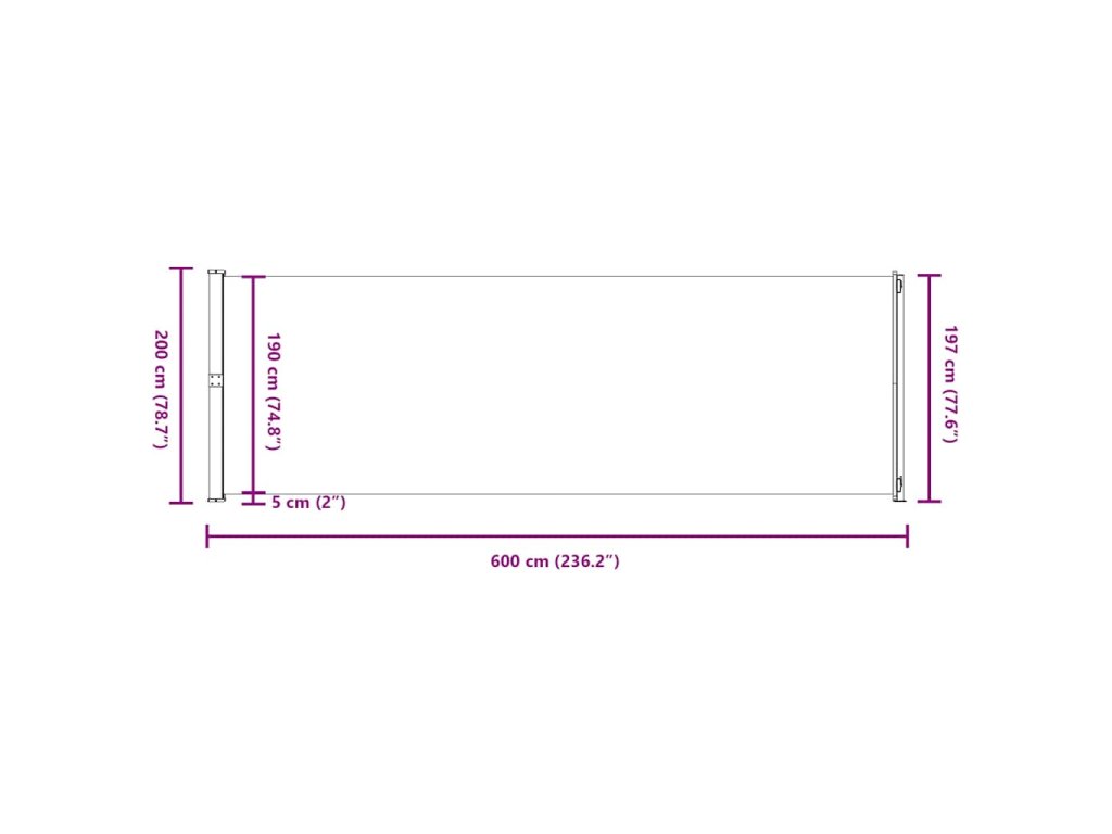 Multidom Zaťahovacia bočná markíza na terasu 200x600 cm sivá