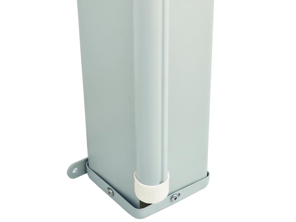 Zástena je vyrobená z polyesteru, ktorý sa netrhá a je odolný voči UV žiareniu. Kazeta, z ktorej markízu jednoducho vytiahnete von, je osadená v zvislej polohe na pevnej oceľovej základni. Markíza je navyše vybavená funkciou automatického zrolovania.