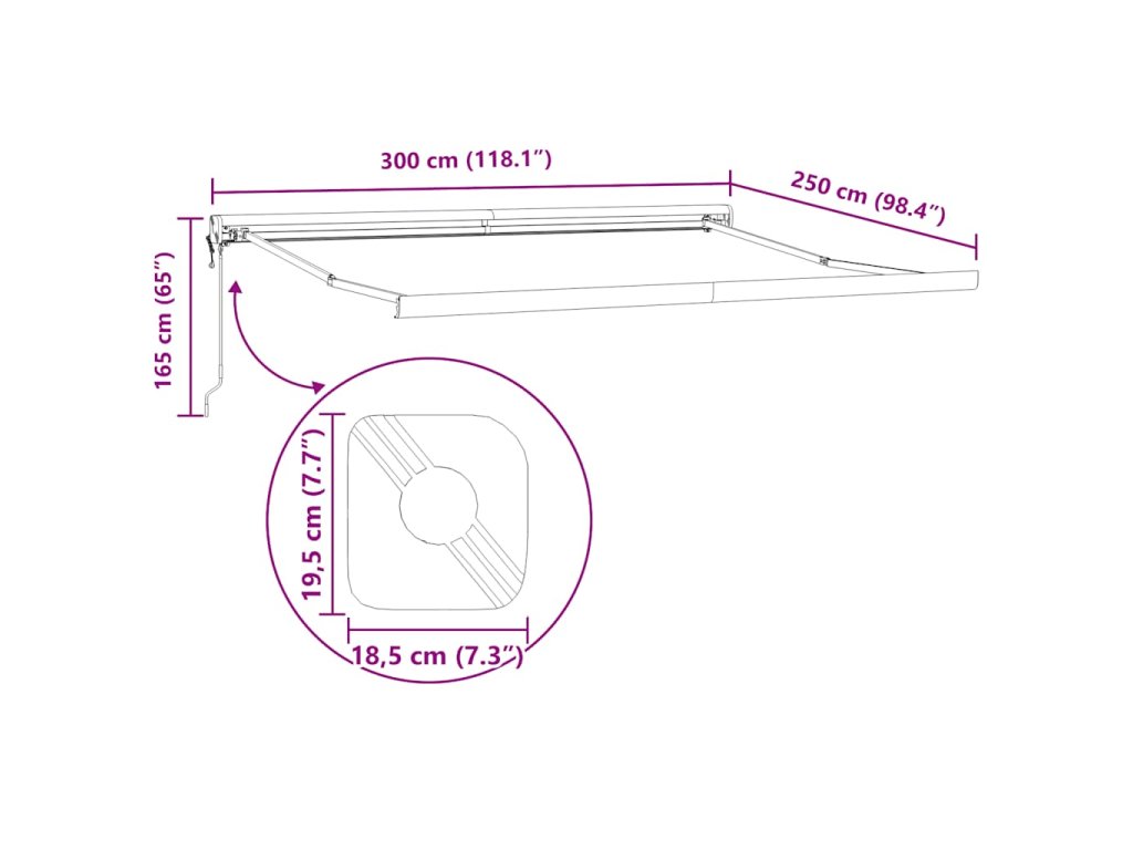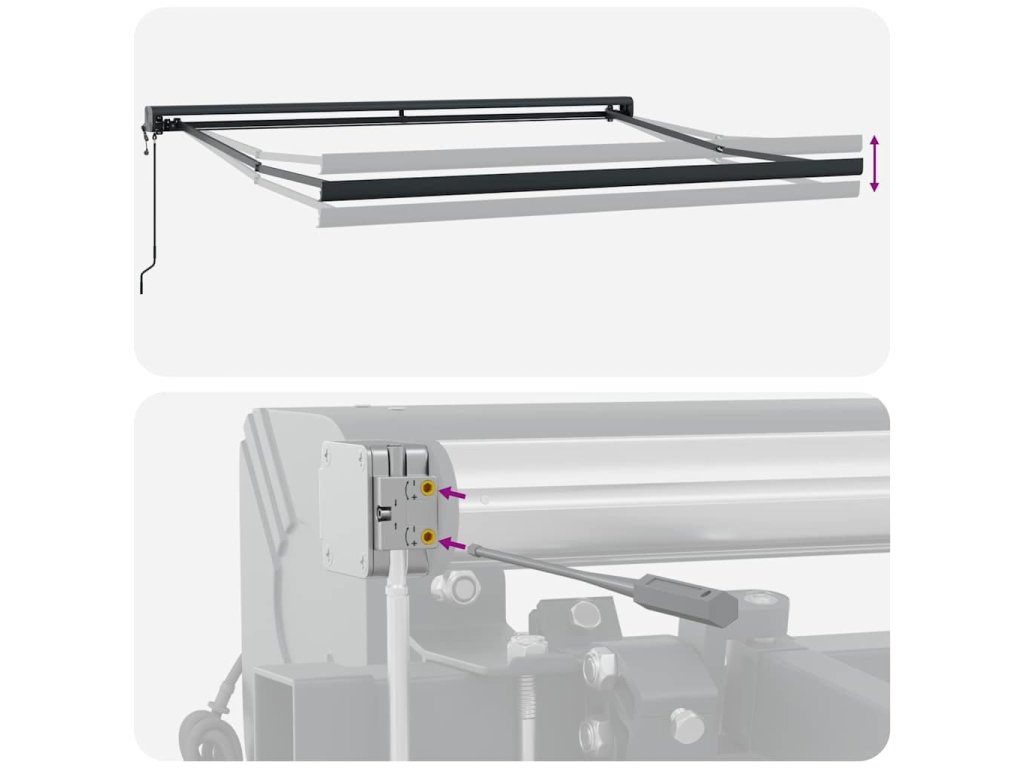 - Odolný materiál: Rám markízy je vyrobený z hliníka s práškovým nástrekom, ktorý je robustný a odolný. Látka s PU povrchovou úpravou je UV odolná. Vašu rodinu alebo hostí ochráni pred UV lúčmi a oslňujúcim slnečným žiarením.