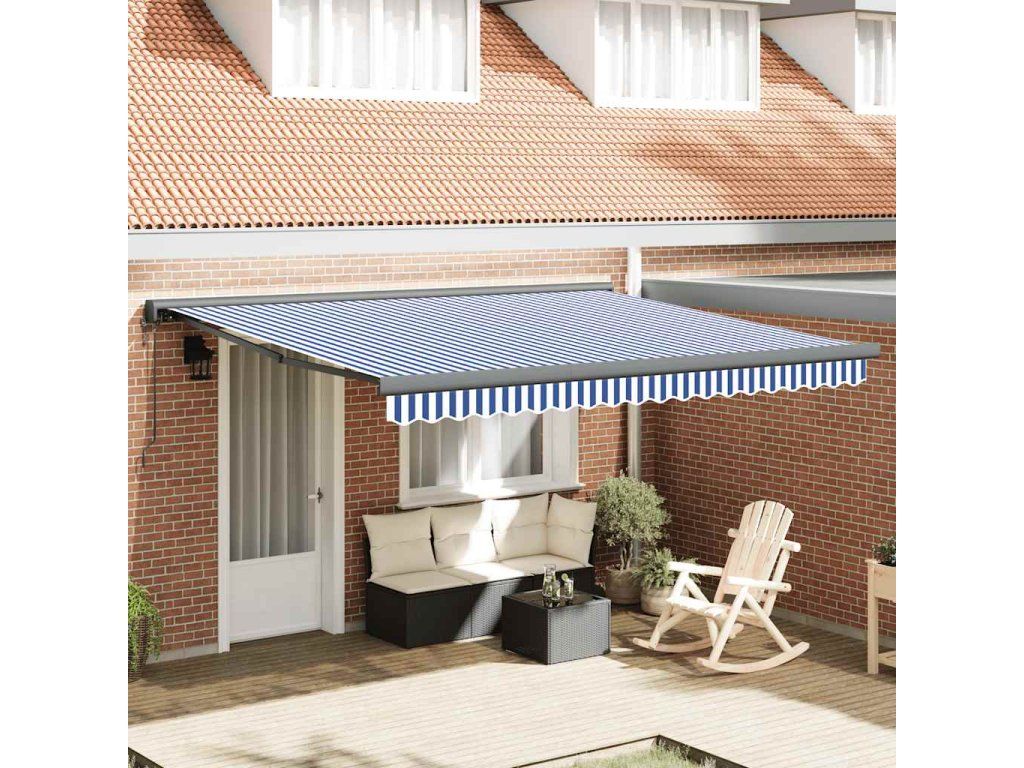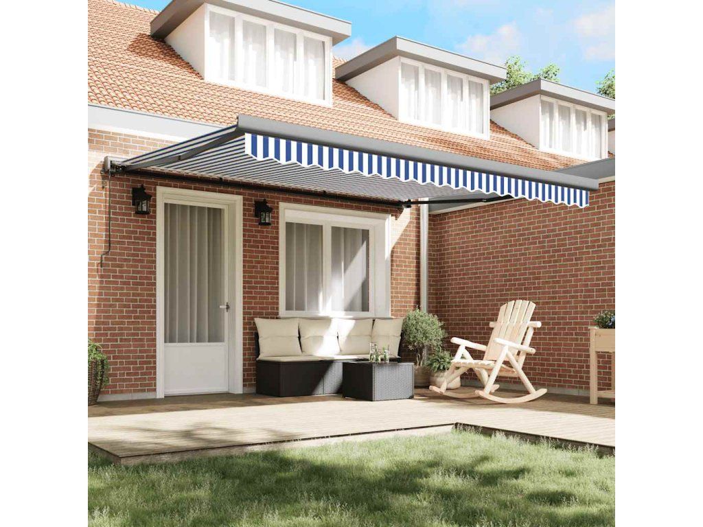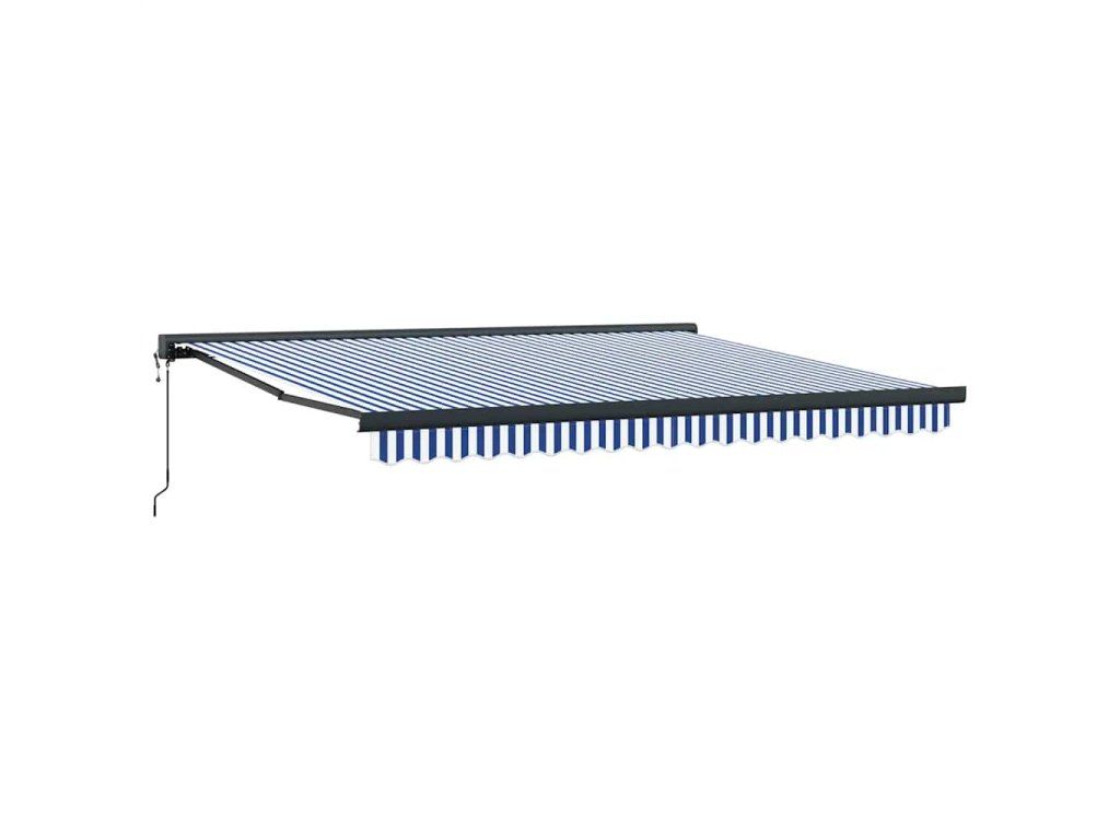 Multidom Zaťahovacia markíza modrá a biela 4x3 m látka a hliník