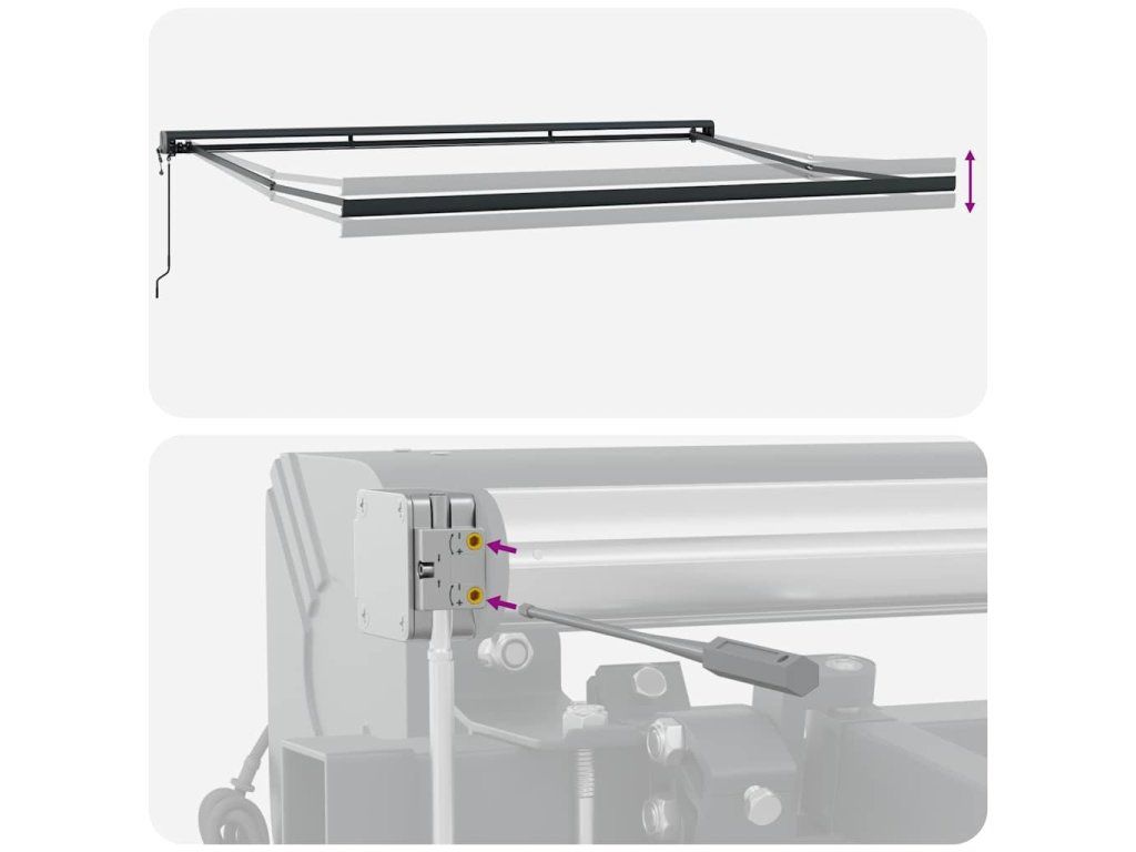 - Odolný materiál: Rám markízy je vyrobený z hliníka s práškovým nástrekom, ktorý je robustný a odolný. Látka s PU povrchovou úpravou je UV odolná. Vašu rodinu alebo hostí ochráni pred UV lúčmi a oslňujúcim slnečným žiarením.
