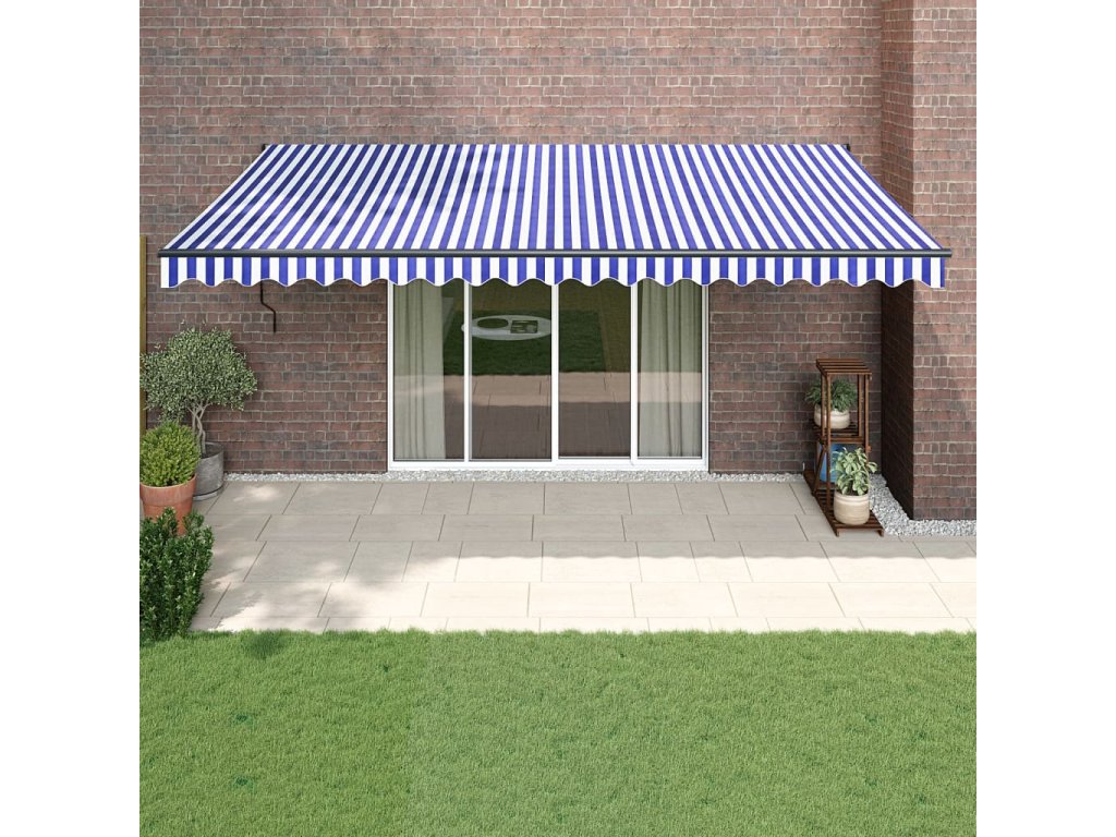 Multidom Zaťahovacia markíza modrá a biela 5x3 m látka a hliník
