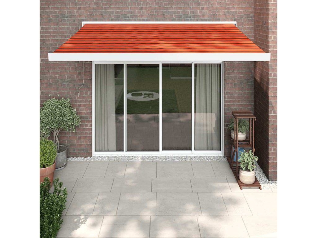 Multidom Zaťahovacia markíza oranžová a hnedá 3,5x2,5 m látka a hliník