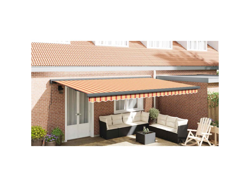 Multidom Zaťahovacia markíza žltá a biela 4,5x3 m látka a hliník