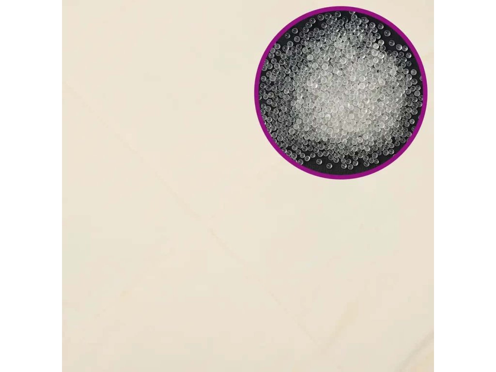 - Mäkká výplň: Deka je vyplnená kombináciou polyesterových vlákien a sklenených guľôčok bez zápachu.