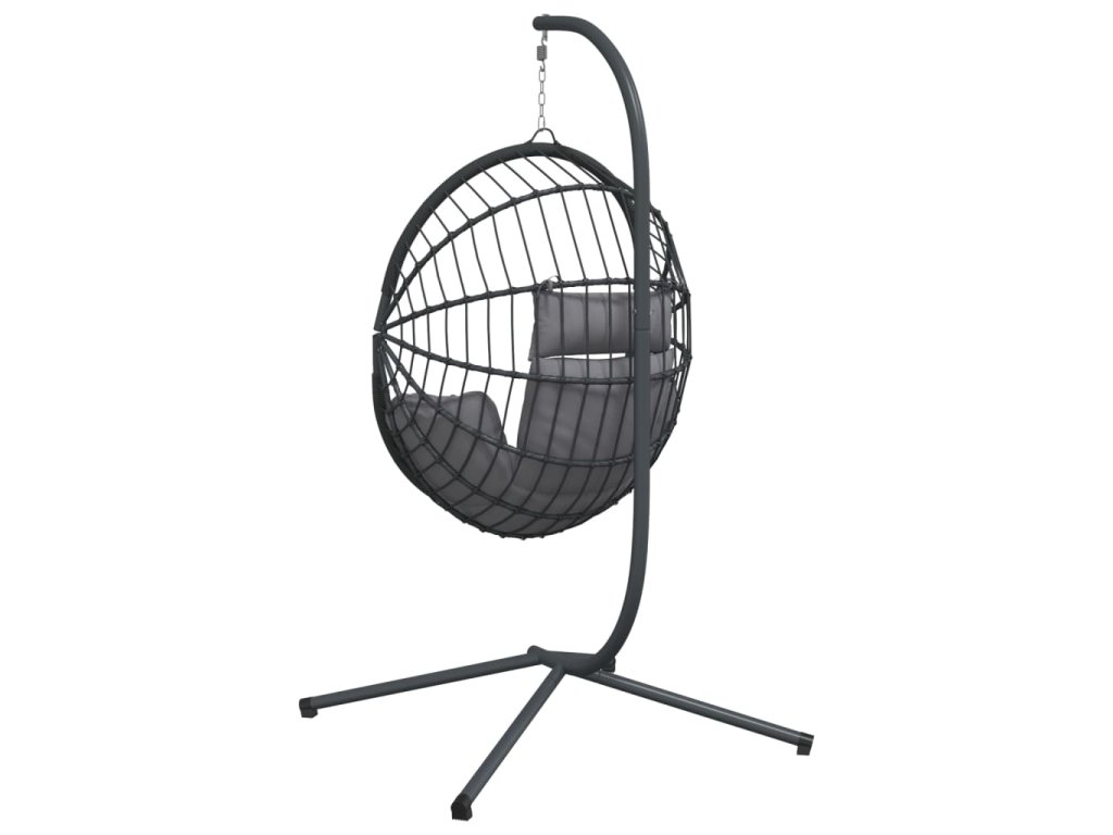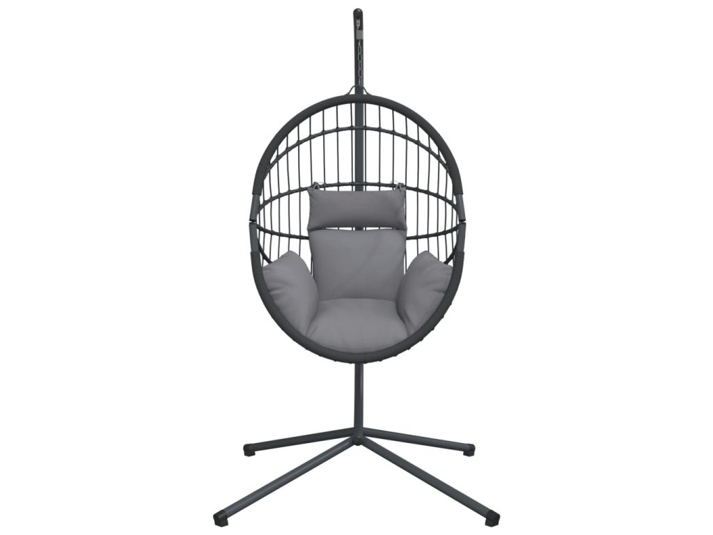 Multidom Závesné kreslo vajíčko so stojanom sivé ratan a oceľ