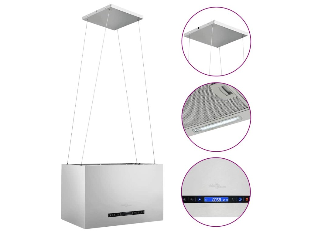 Multidom Závesný ostrovný digestor s dotykovým senzorom LCD 55 cm nehrdzavejúca oceľ