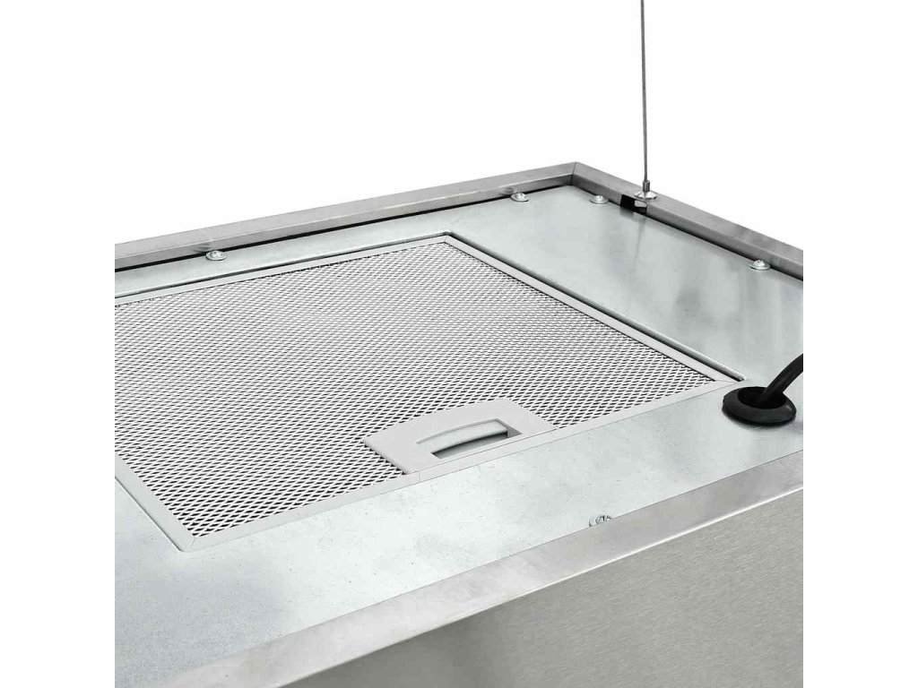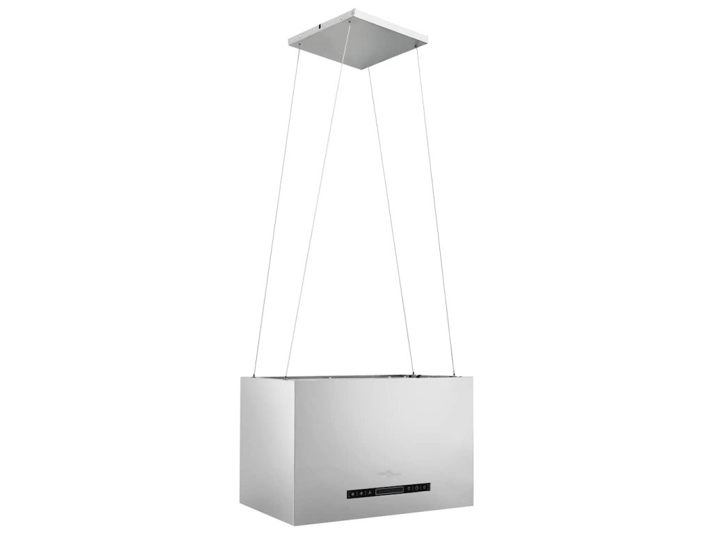 Tento ostrovný digestor sa montuje na strop pomocou dosky z nehrdzavejúcej ocele. Oceľové závesné drôtené laná sa dajú nastaviť tak, aby ste digestor zdvihli alebo znížili.