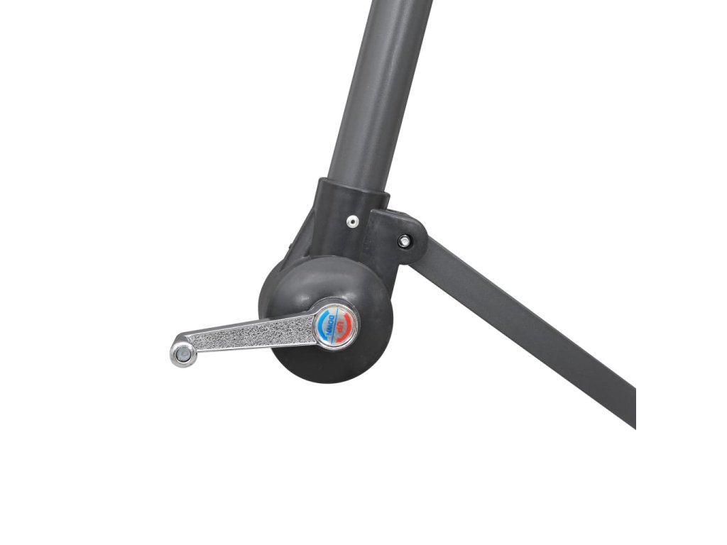 Slnečník je vyrobený z polyesteru, ktorý nevybledne a je odolný voči UV žiareniu, vďaka čomu vám poskytne optimálnu ochranu pred slnkom a ľahko sa čistí. Slnečník má pevný oceľový podstavec v tvare kríža pre lepšiu stabilitu. Vďaka exkluzívnemu dizajnu vytvorí dostatočne veľký tieň. Pevná hliníková tyč spolu so 16 trvácnymi rebrami zabezpečujú výbornú stabilitu a dlhú životnosť slnečníka. Záhradný slnečník sa dá jednoducho otvárať a zatvárať pomocou kľukového mechanizmu. Výrobok sa jednoducho montuje.