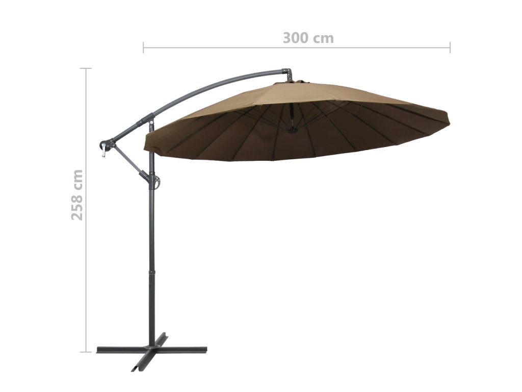Multidom Závesný slnečník, sivohnedý 3 m, hliníková tyč