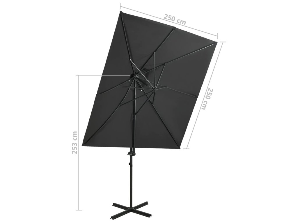 Multidom Závesný záhradný slnečník, dvojitá strieška, antracit 250x250cm
