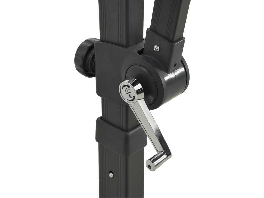 Vrch slnečníka vám poskytne optimálnu ochranu pred slnkom a ľahko sa čistí, pretože je vyrobený z polyesteru odolného voči UV žiareniu a vyblednutiu. Má stabilný krížový podstavec, ktorý mu dodáva stabilitu. Exkluzívny dizajn umožňuje slnečník nakloniť a otáčať o 360 stupňov, aby zablokoval zapadajúce slnko. Vďaka pevnej hliníkovej tyči a 8 rebrám je slnečník veľmi stabilný a trvácny. Tento záhradný slnečník sa dá ľahko otvárať a zatvárať vďaka kľukovému mechanizmu. Dvojitý vrchný kryt navyše umožňuje vetranie.