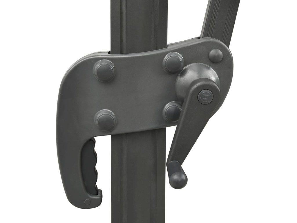 Vrch slnečníka vám poskytne optimálnu ochranu pred slnkom a ľahko sa čistí, pretože je vyrobený z polyesteru odolného voči UV žiareniu a vyblednutiu. Má stabilný krížový podstavec, ktorý mu dodáva stabilitu. Exkluzívny dizajn umožňuje slnečník nakloniť a otáčať o 360 stupňov, aby zablokoval zapadajúce slnko. Vďaka pevnej hliníkovej tyči a 8 rebrám je slnečník veľmi stabilný a trvácny. Tento záhradný slnečník sa dá ľahko otvárať a zatvárať vďaka kľukovému mechanizmu. Dvojitý vrchný kryt navyše umožňuje vetranie.