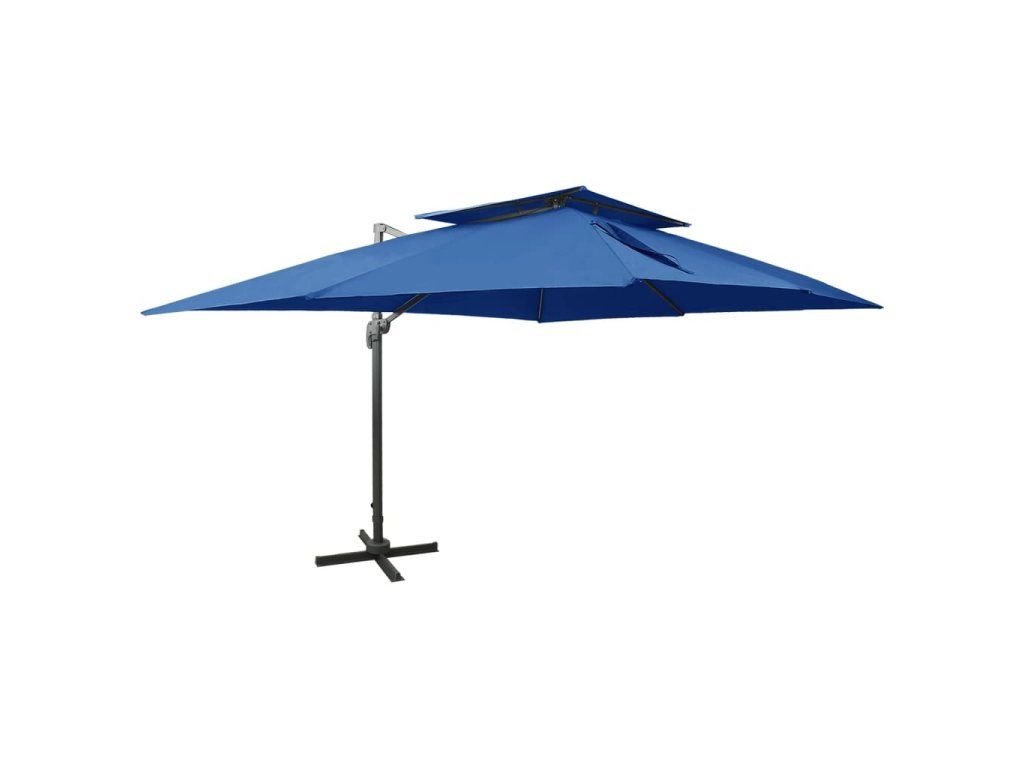 Multidom Závesný záhradný slnečník, dvojitá strieška, azúrový 400x300 cm