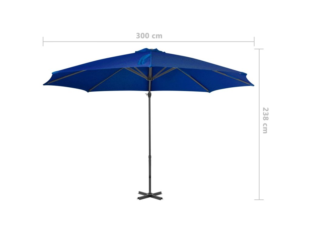 Multidom Závesný záhradný slnečník, hliníková tyč, azúrový 300 cm