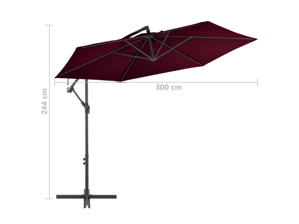 Multidom Závesný záhradný slnečník, hliníková tyč, bordový 300 cm