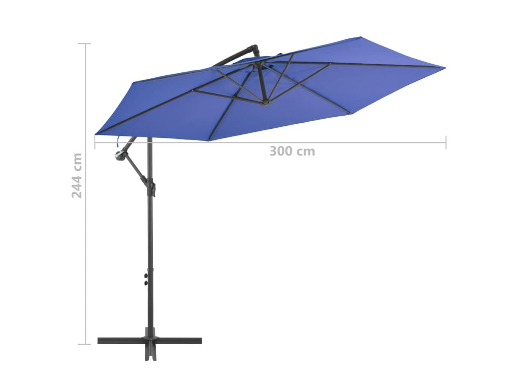 Multidom Závesný záhradný slnečník, hliníková tyč 300 cm, modrý