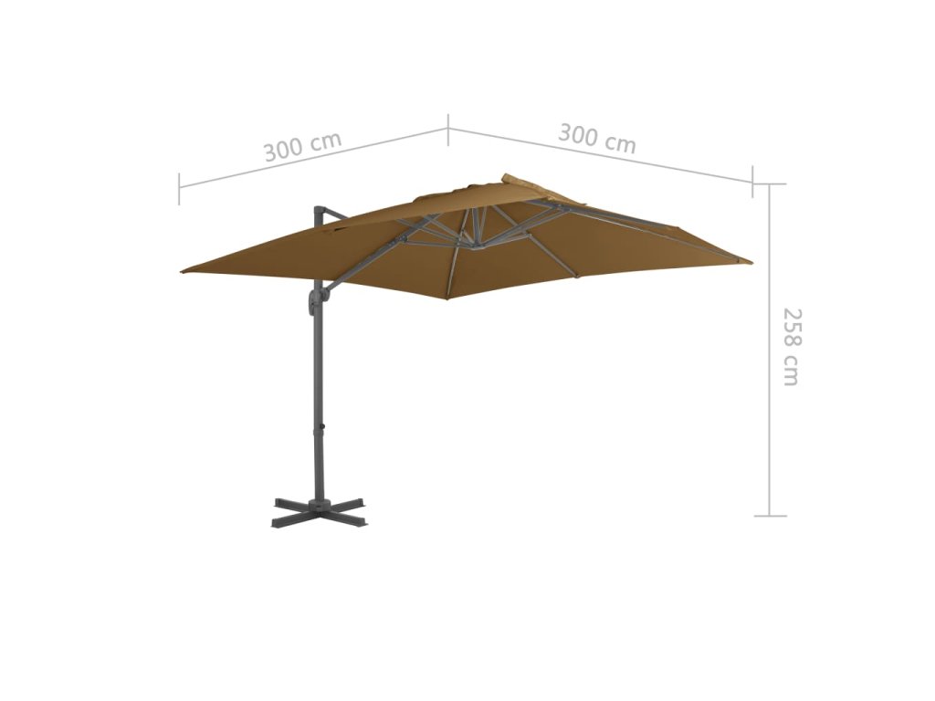 Multidom Závesný záhradný slnečník, hliníková tyč 300x300 cm, sivohnedý