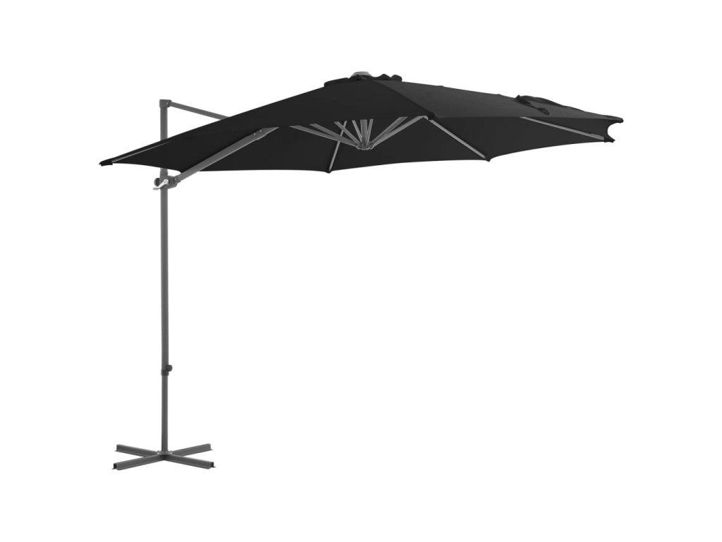 Multidom Závesný záhradný slnečník, oceľová tyč, čierny 300 cm