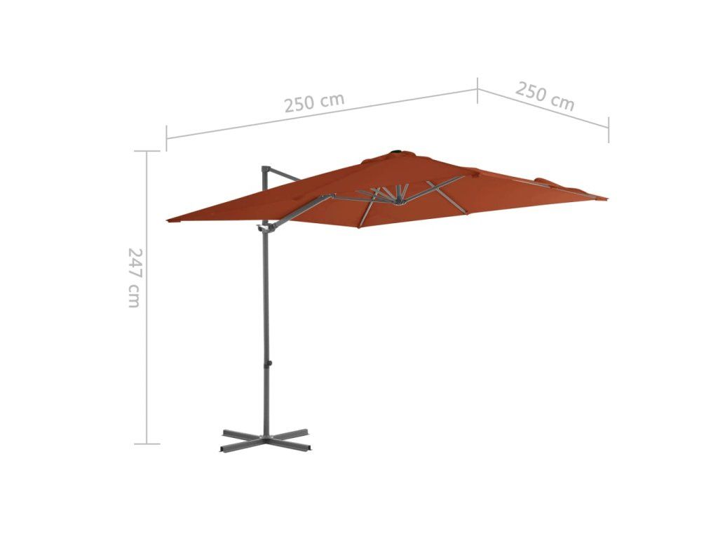 Multidom Závesný záhradný slnečník, oceľová tyč, tehlový 250x250 cm