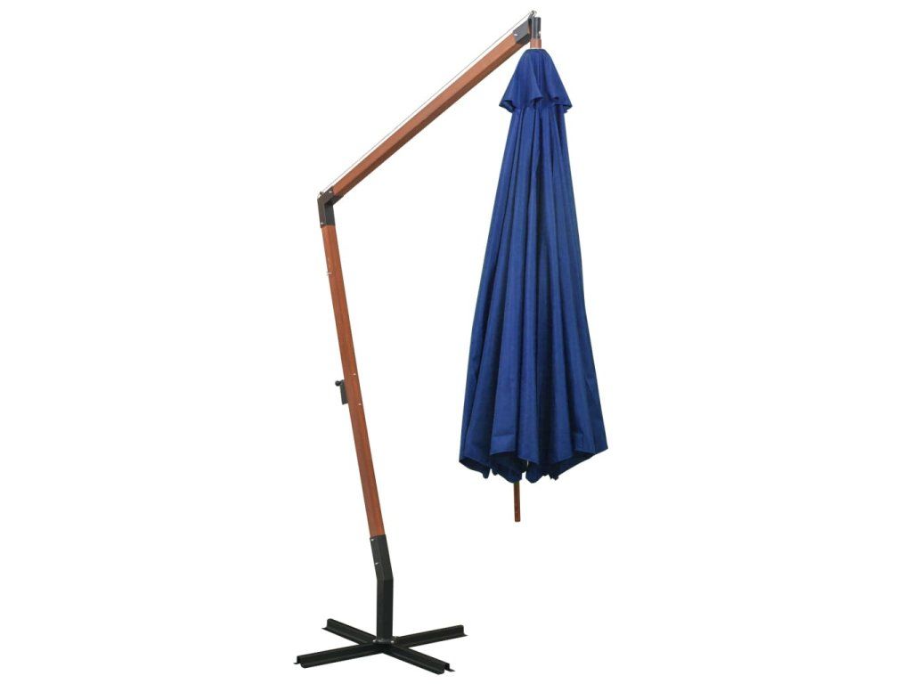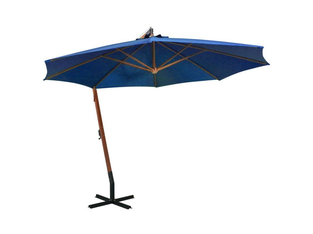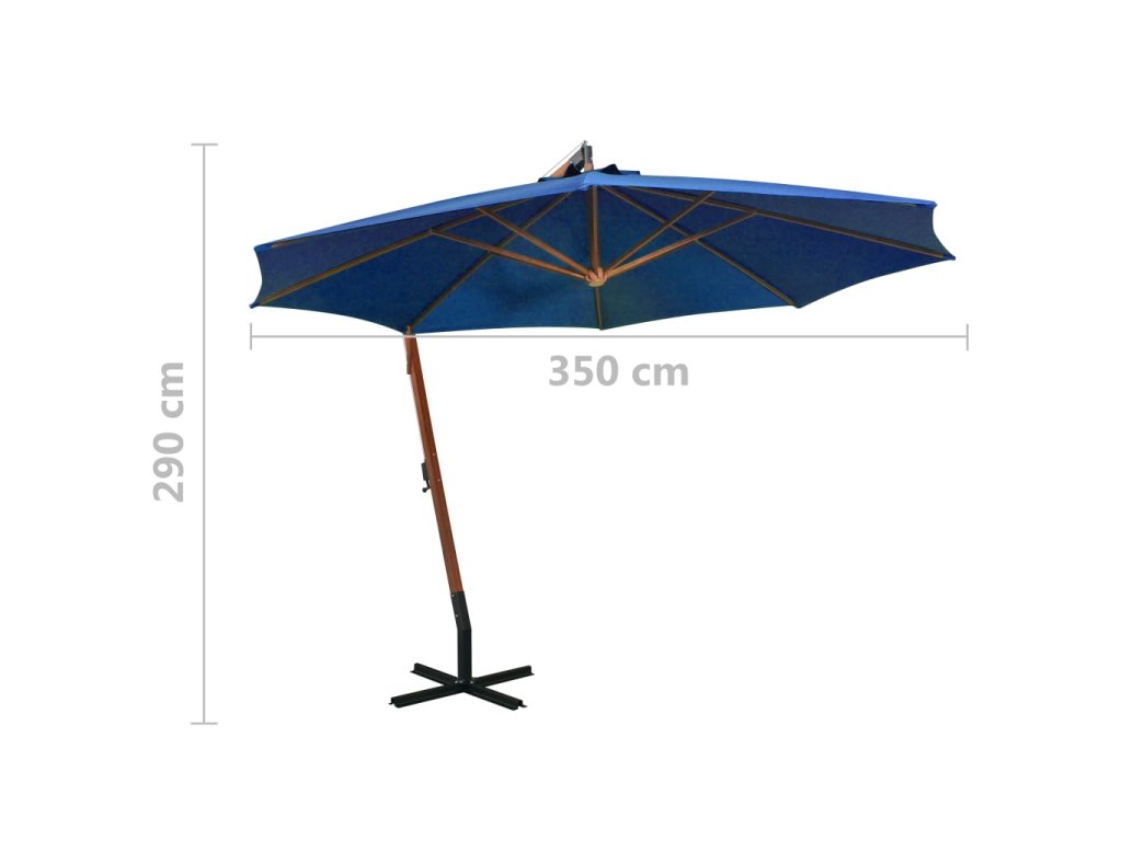 Multidom Závesný záhradný slnečník+ tyč, azúrový 3,5x2,9m, jedľový masív