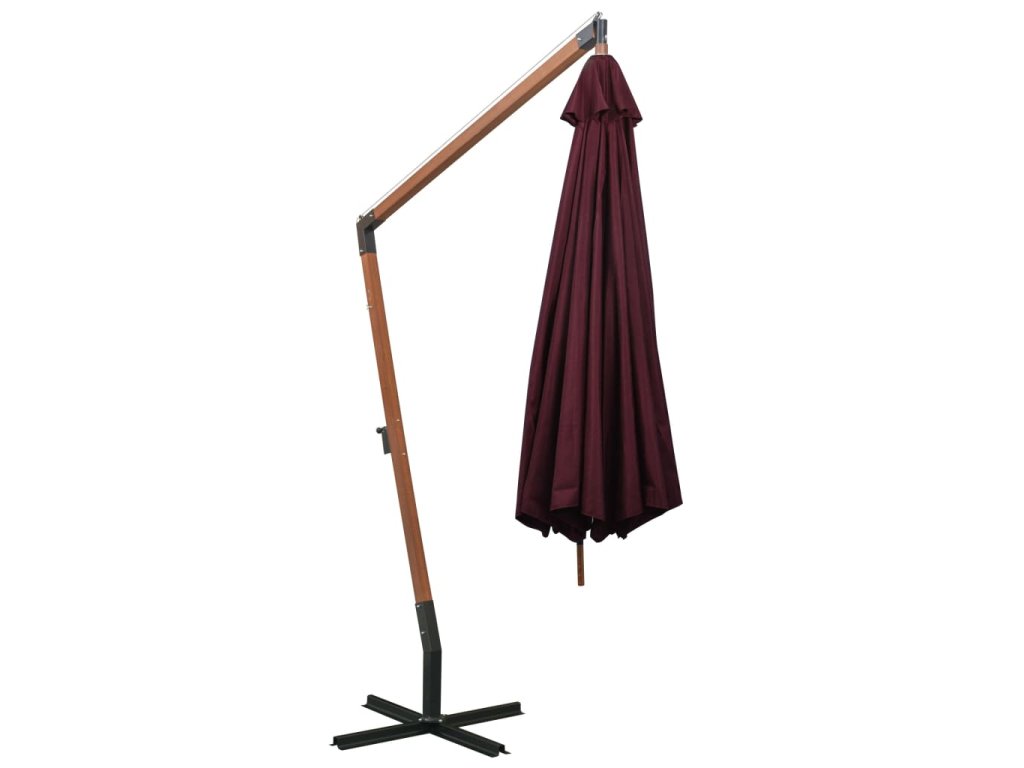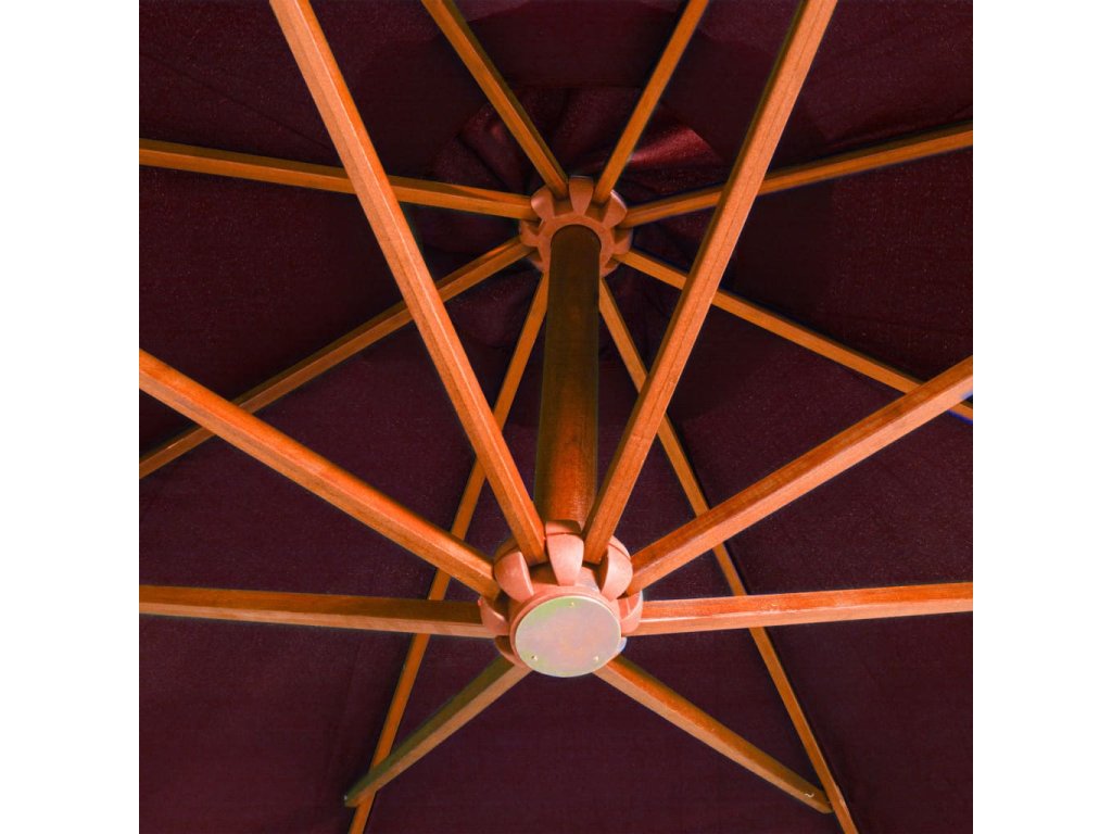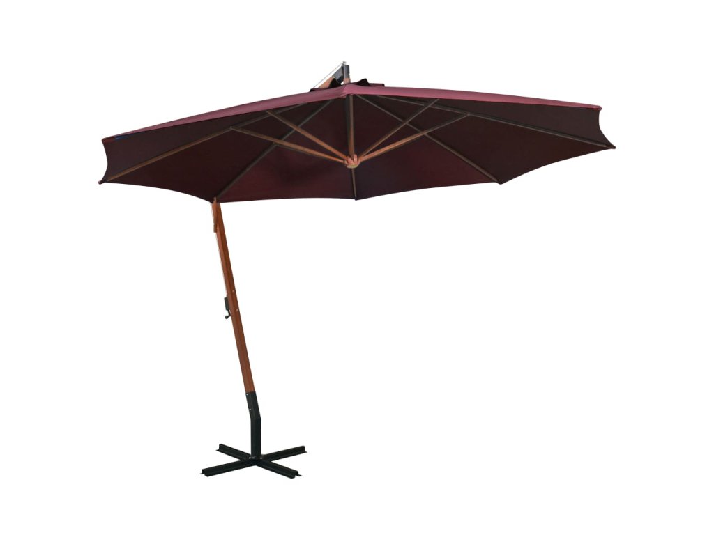 Multidom Závesný záhradný slnečník+ tyč, bordový 3,5x2,9m, jedľový masív