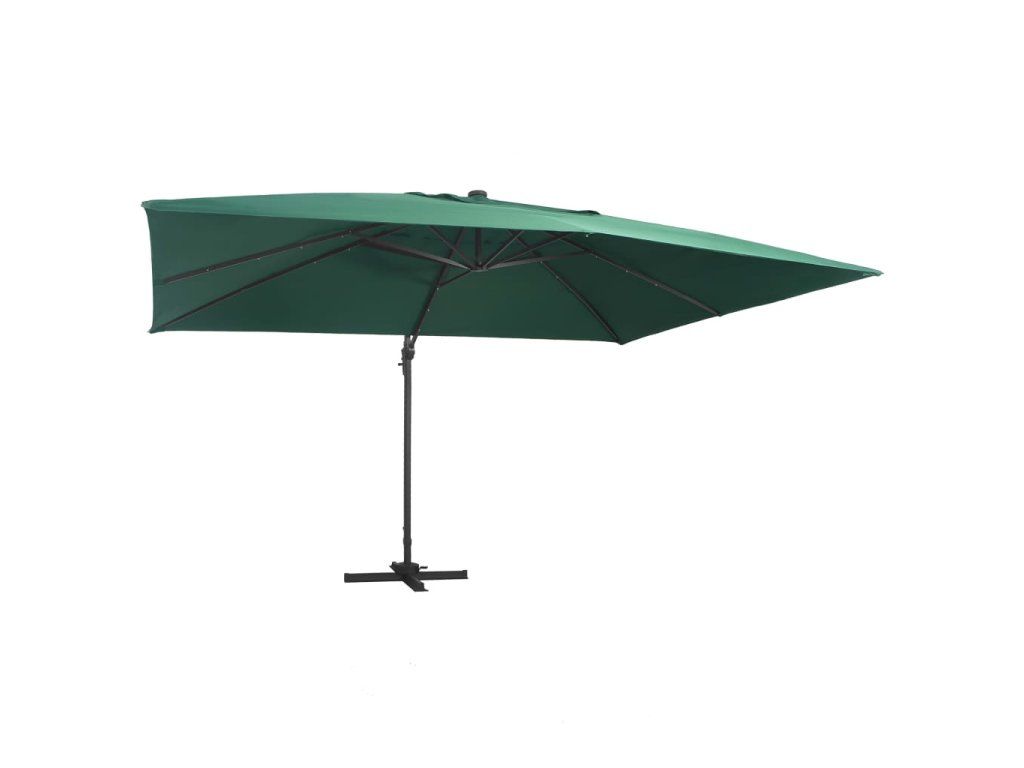 Multidom Závesný záhradný slnečník+LED, hliníková tyč 400x300 cm, zelený