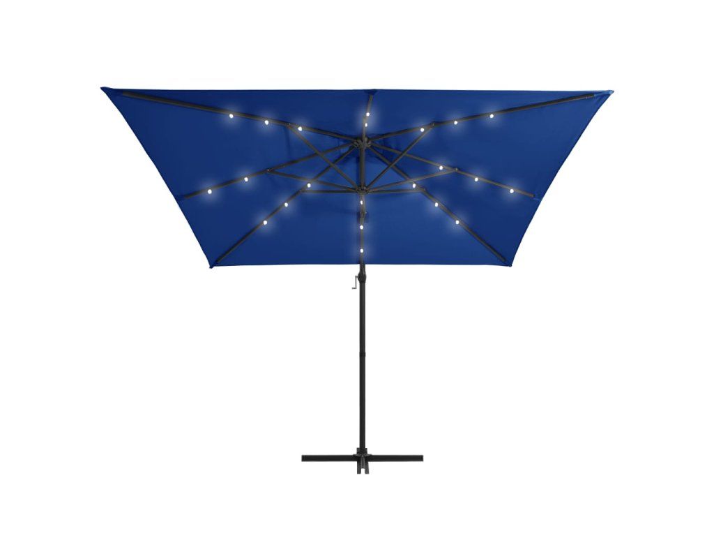 Multidom Závesný záhradný slnečník+LED, oceľová tyč 250x250 cm, azúrový