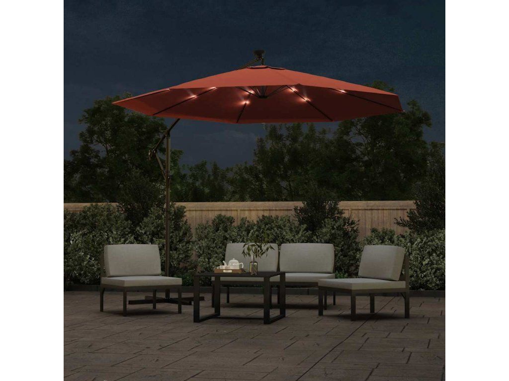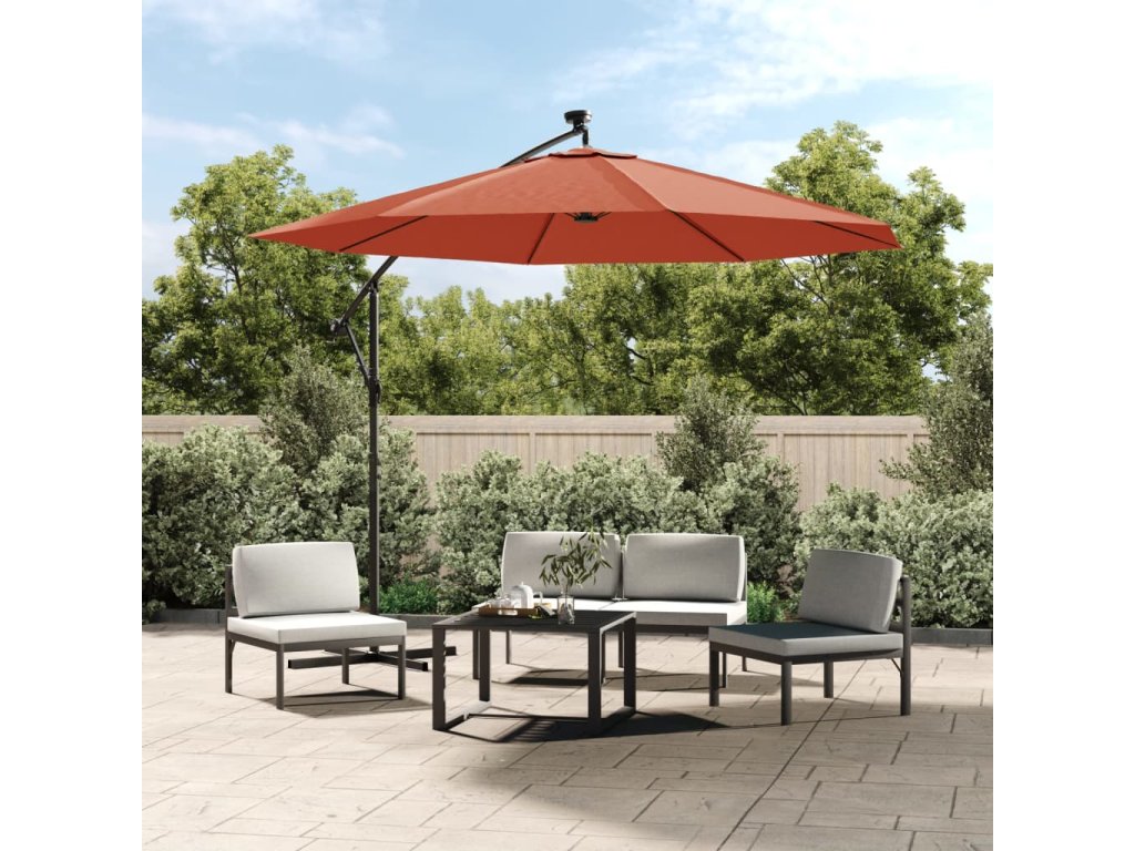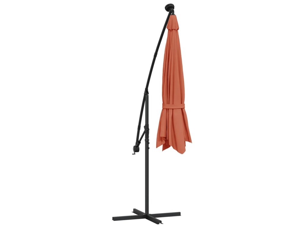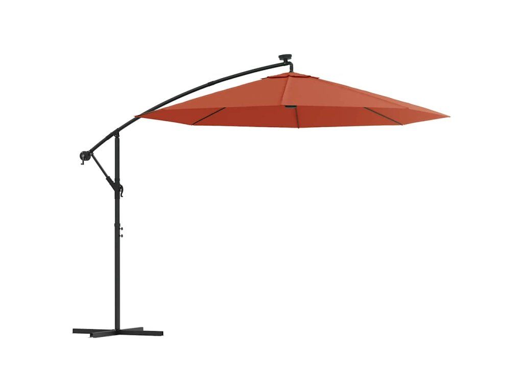Multidom Závesný záhradný slnečník s LED, oceľová tyč, tehlovo červený
