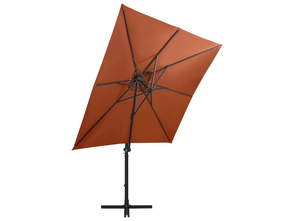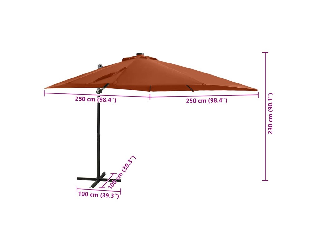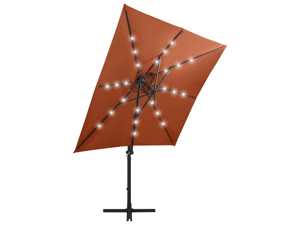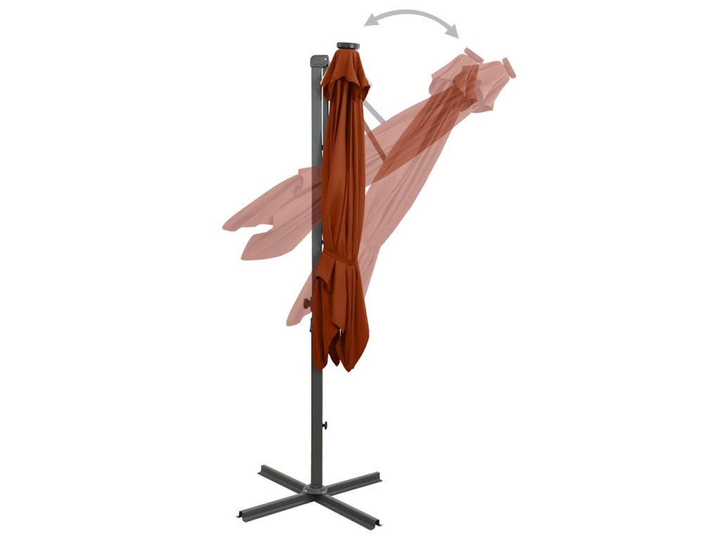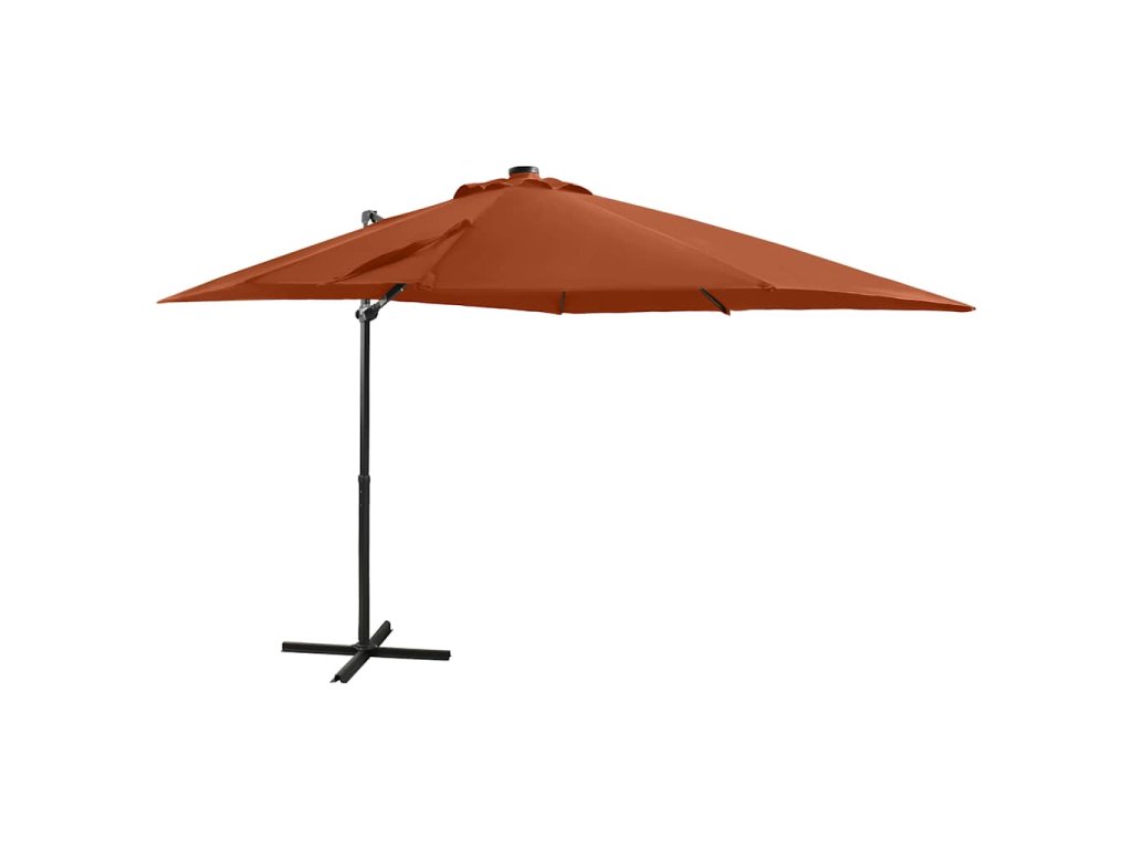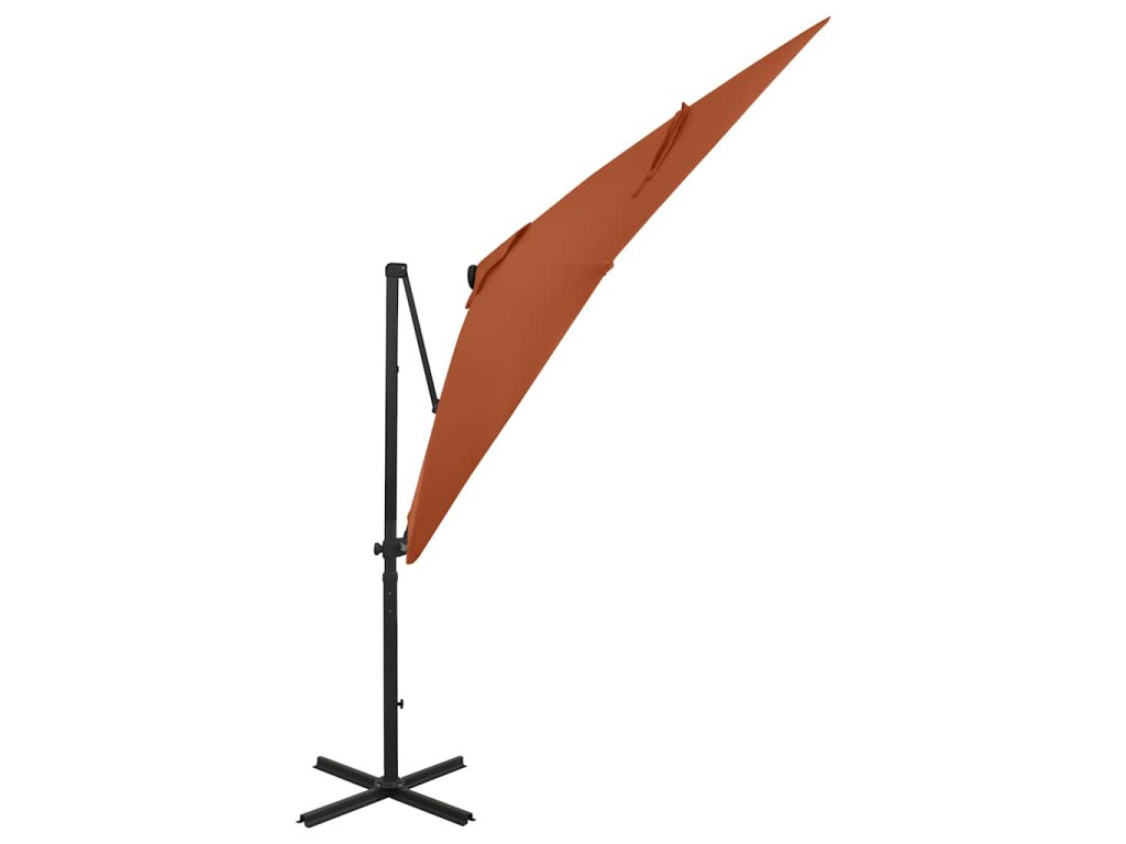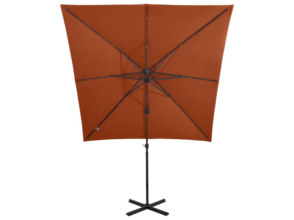 Multidom Závesný záhradný slnečník s tyčou a LED, tehlovo červený 250 cm