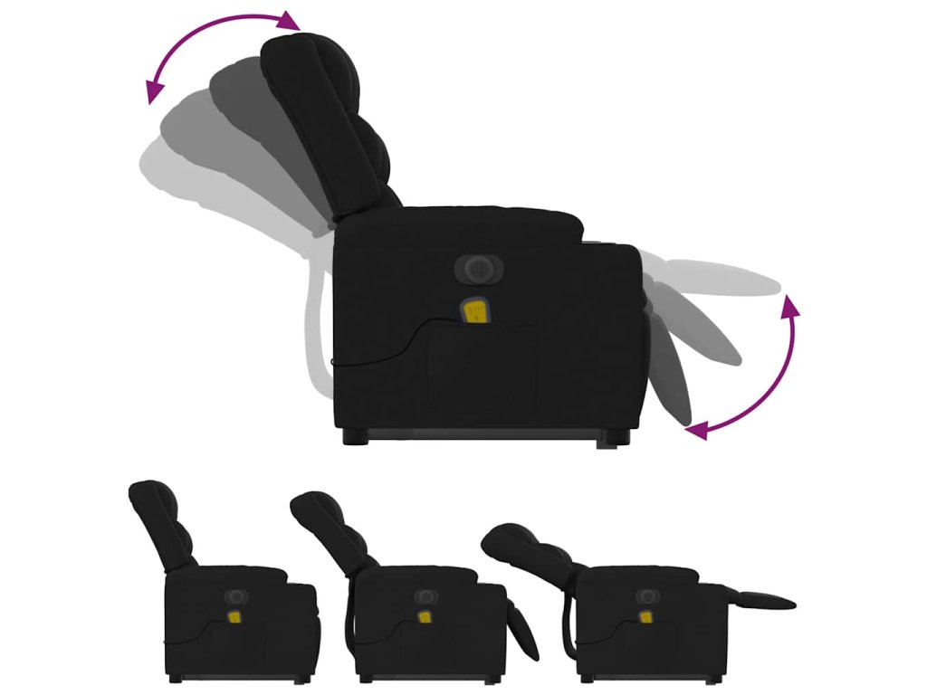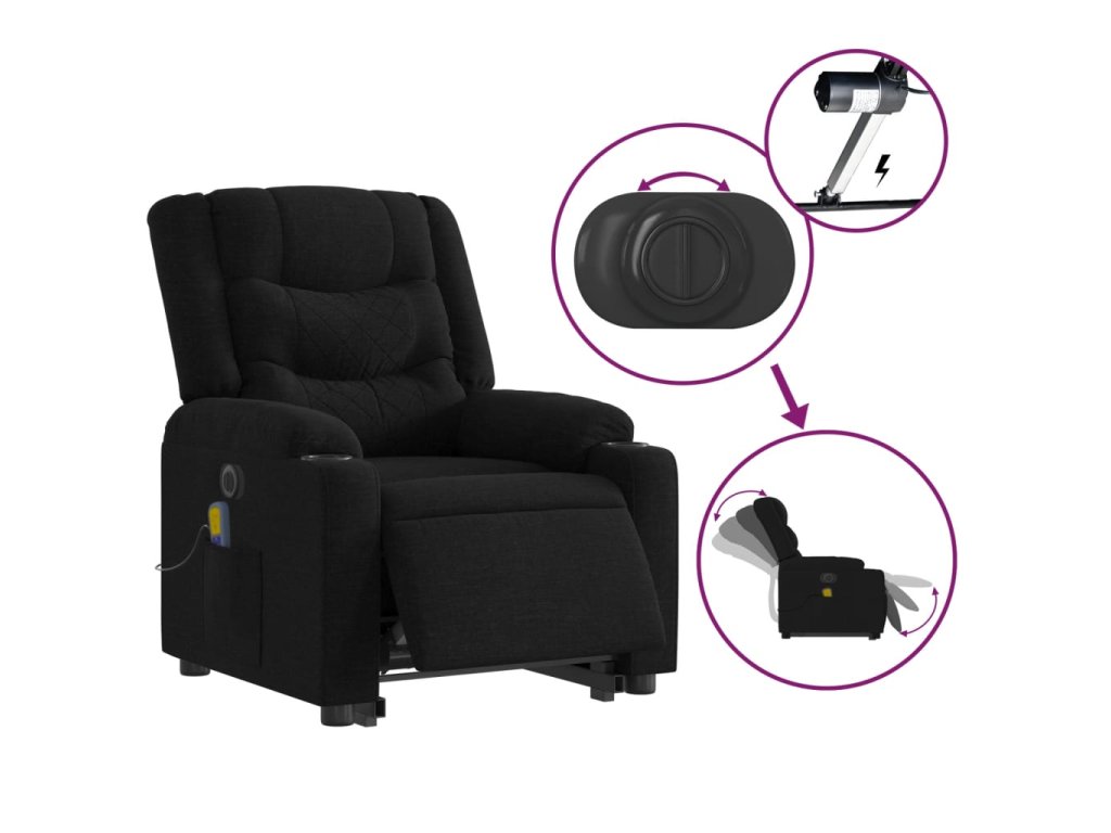 Multidom Zdvíhacie a sklápacie elektrické masážne kreslo, čierne, látka
