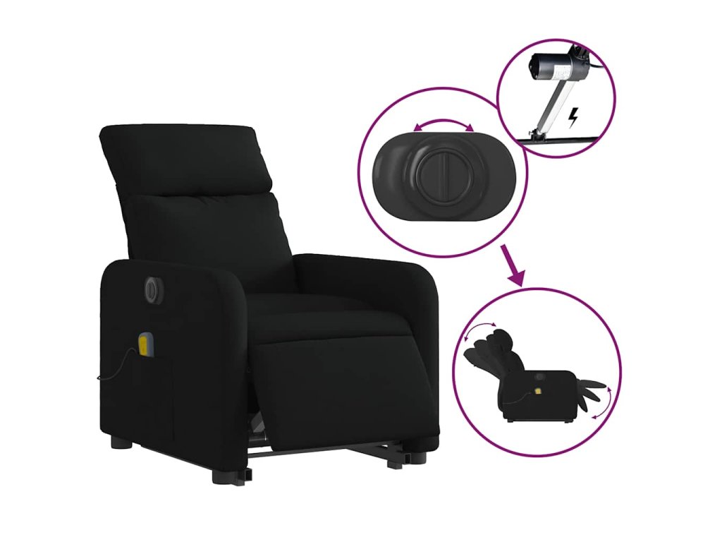 Multidom Zdvíhacie a sklápacie elektrické masážne kreslo, čierne, látka