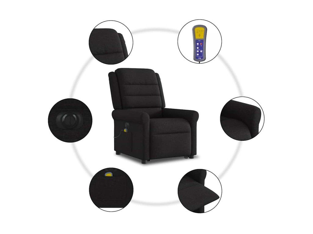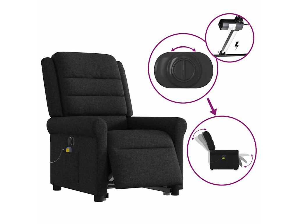 Multidom Zdvíhacie a sklápacie elektrické masážne kreslo, čierne, látka