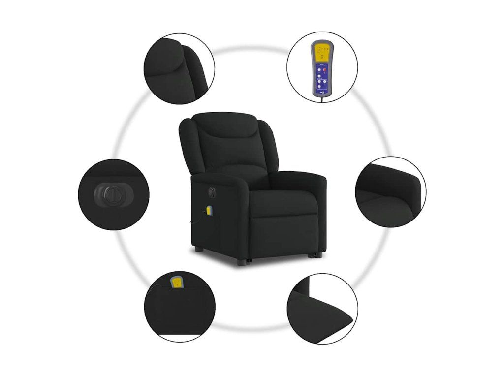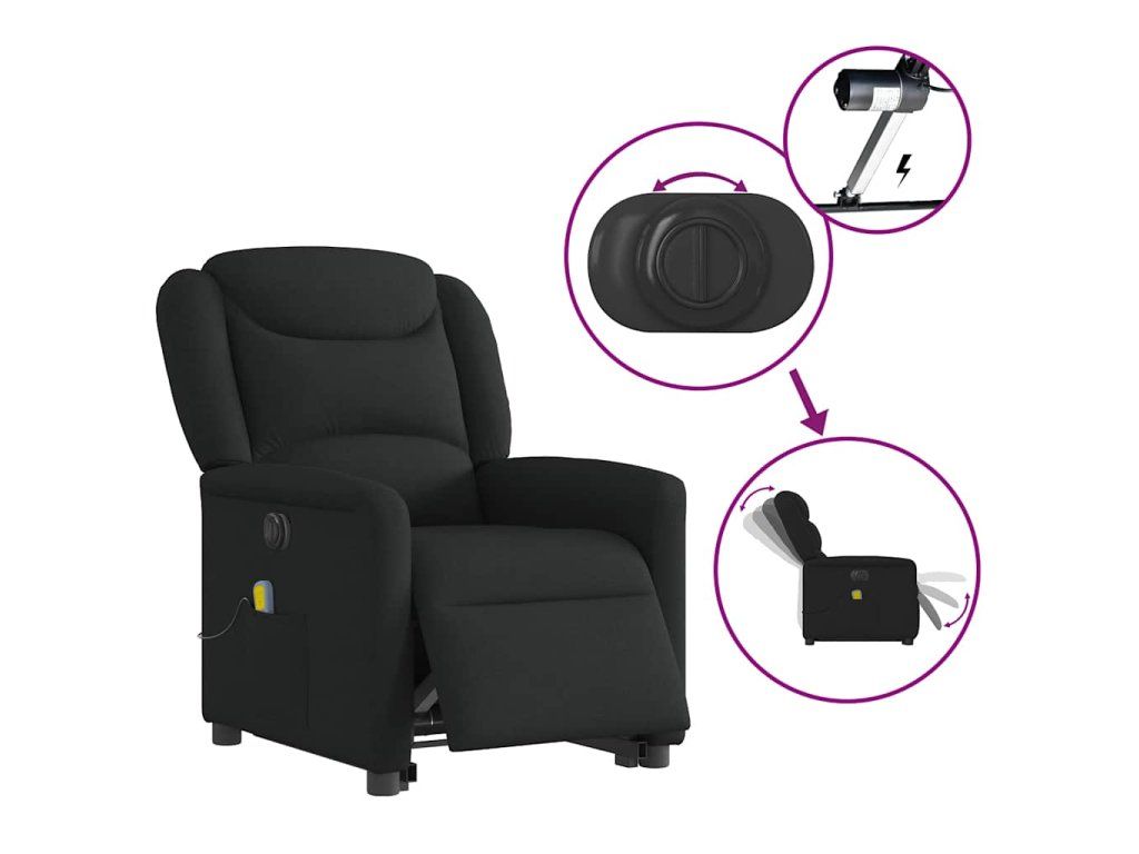 Multidom Zdvíhacie a sklápacie elektrické masážne kreslo, čierne, látka