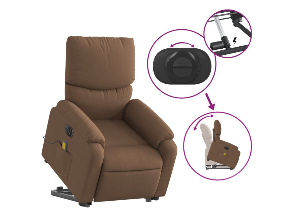 Multidom Zdvíhacie a sklápacie elektrické masážne kreslo, hnedé, látka